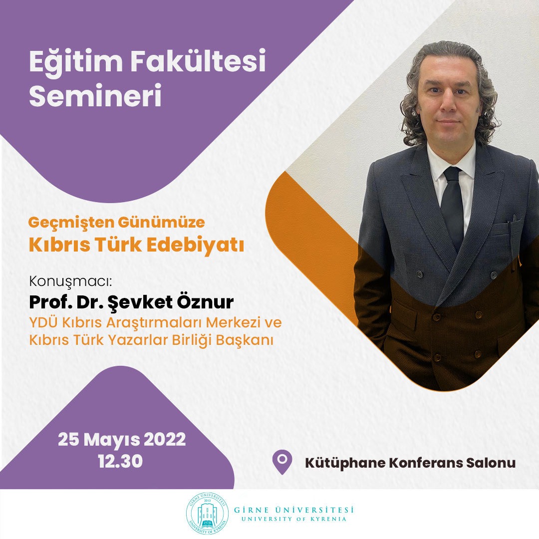 Girne Üniversitesi Eğitim Fakültesi Yakın Doğu Üniversitesi Kıbrıs Araştırmaları Merkezi ve Kıbrıs Yazarlar Birliği Başkanı Prof. Dr. Şevket Öznur’un katılımıyla “Geçmişten Günümüze Kıbrıs Türk Edebiyatı” konulu bir seminer gerçekleştirdi.